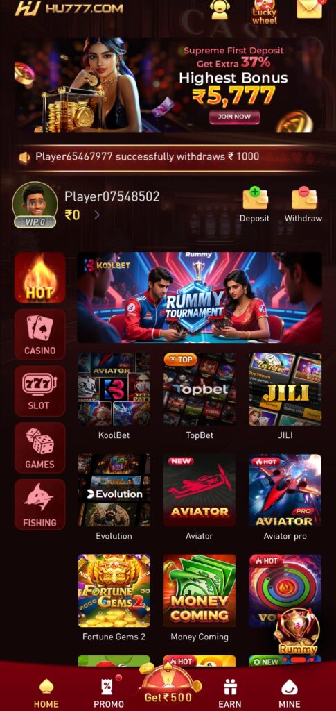 Hu777apk bonus 65 rupees If you play hu777 game then you can win a lot of rupees, the money won in this game can be withdrawn easily.